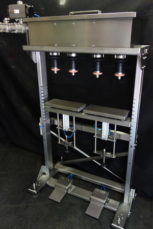 For different bottle sizes or heights, the filling platform can be adjusted up and down. With this system, a constant filling volume is obtained over the whole filling range. Filling speed is dependent on product viscosity and operator efficiency.